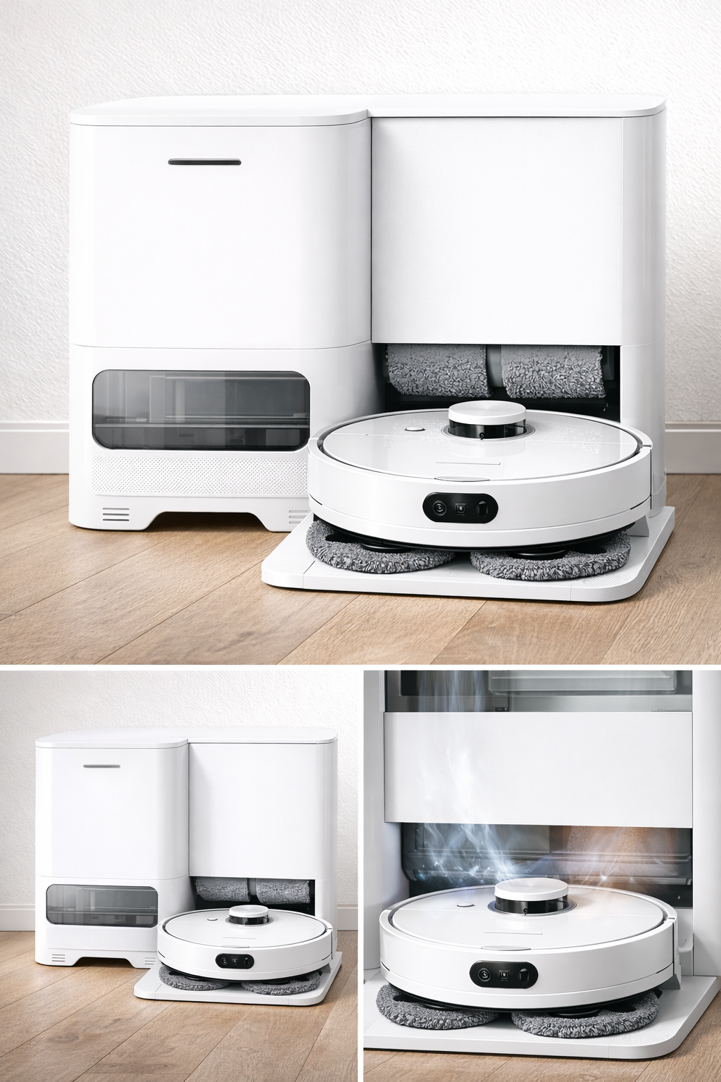 Smart Cleaning Base: Auto dust emptying and mop washing for semi-automatic maintenance.