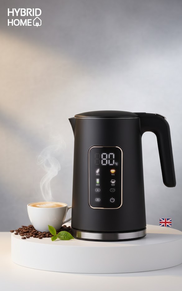 إبريق هايبرد هوم الرقمي يجمع بين التكنولوجيا المتقدمة والتصميم العصري، لتسخين الماء بسرعة وسهولة مع التحكم الرقمي الكامل.