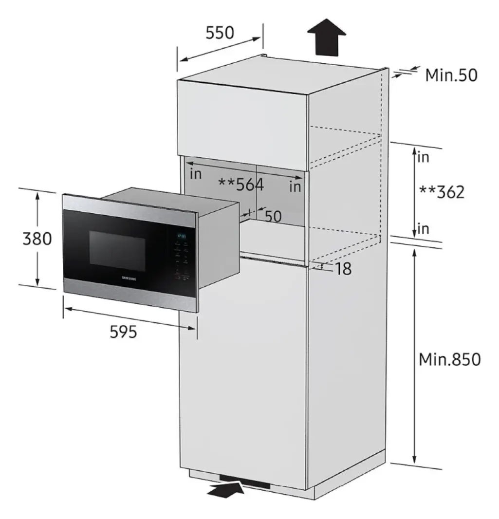 مايكروويف سامسونج مدمج (Built-in) سعة 22 لتر مع شواية ستانلس ستيل MG22M8074AT/EU